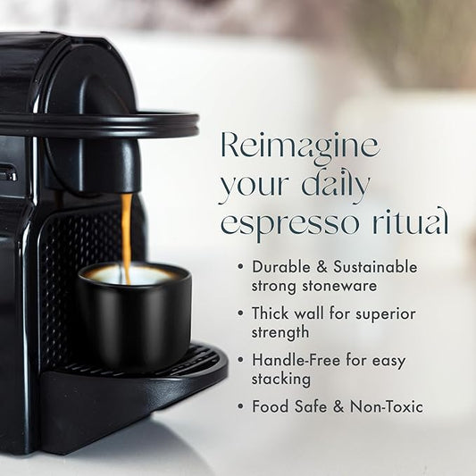 KIVY Stoneware Espresso Cups, 4-Piece Set - Italian Design, Thick-Walled, 3 oz, Microwave & Dishwasher Safe
