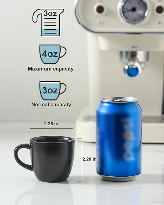 Hasense Ceramic 3 OZ Espresso Cups, Porcelain Espresso Demitasse Cups Set of 4 for Double shot, Lungo and Ristretto, Tiny Italian Expresso Shot Coffee Mugs for Home and Office, Black