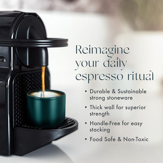 Espresso Cups Set of 2, 2 oz Ceramic Espresso Cups, Demitasse Cups for Tea or Coffee (Dark Green)