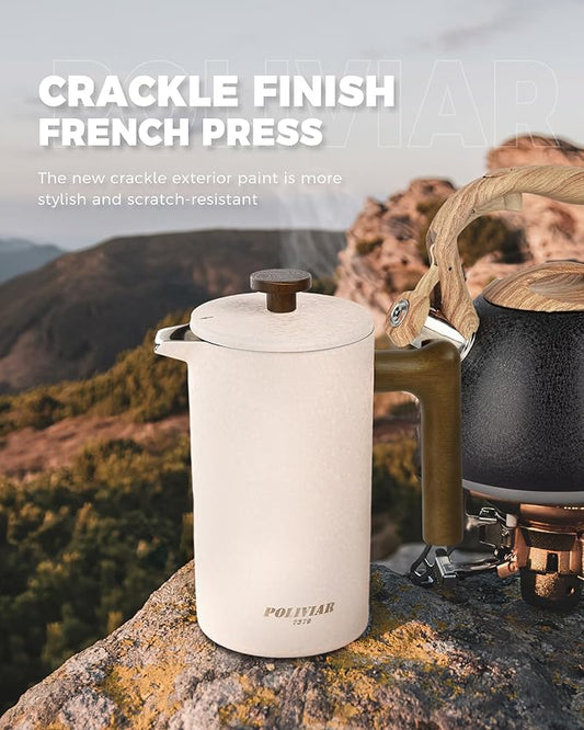 POLIVIAR French Press Coffee Maker, 34 Ounce Coffee Press with Real Wood Handle, Double Wall Insulation & Dual- Filter Screen, Food Grade Stainless Steel for Good Coffee and Tea (Vintage)