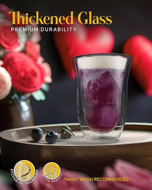 Kitchables Double Walled Glass Coffee Mugs Set of 2, 15oz Insulated Glass Coffee Mugs for Cappuccino, Latte, Tea, Espresso - Latte Cup - Tazas Para Cafe