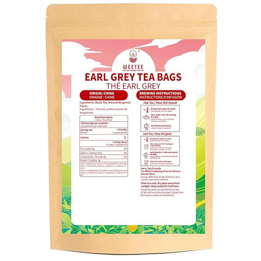 WT WEETEE Earl Grey Tea Bags, 100 Count Black Tea Flavored with Bergamot Orange, Resealable Kraft Bag | Brew Hot or Iced