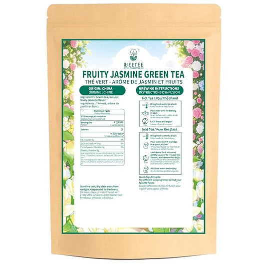 WT WEETEE Fruity Jasmine Green Tea Bags 100 Counts, Flavored Green Tea with Jasmine, Grapes, Passionfruit & Strawberry Aroma, Natural, Balanced & Refreshing