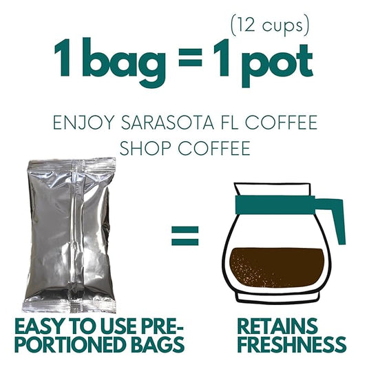 Sarasota Coffee Ground Packets | Gourmet Medium Roast Bulk Coffee Packs | Breakfast Blend | Low Acid Mold Free Singles Individual Pouches for 12 Cup Coffee Maker | 1.5 Ounce Bags, 42 Count