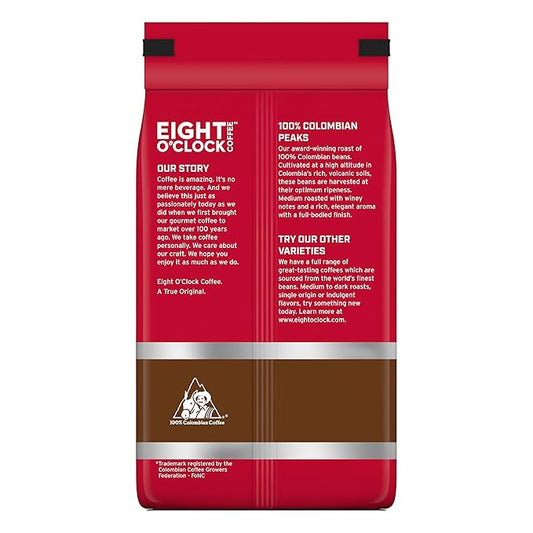 Eight O'Clock Coffee 100% Colombian Peaks Whole Bean Coffee, Medium Roast, 20 Ounce (Pack of 1) - Rich, Winey & Full Bodied