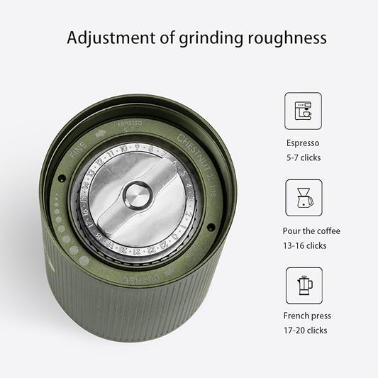 TIMEMORE S3 Manual Coffee Grinder with External Adjustment and Stainless Steel Patented Burr,Hand Coffee Grinder High Presicion Premium Expresso Coffee Grinder Chestnut S3 - Green