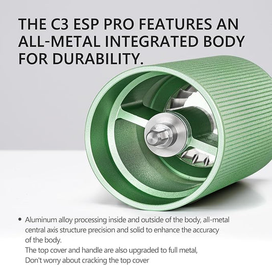 TIMEMORE Chestnut C3 ESP Pro Manual Coffee Grinder, Stainless Steel S2C Conical Burr Hand Coffee Grinder with Foldable Handle, Adjustable Grind Setting for Espresso to French Press - Green
