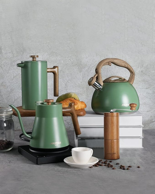 POLIVIAR Manual Coffee Grinder, Coffee Bean Grinder with Adjustable Ceramic Burr, Vintage Style Wooden Hand Coffee Grinder, Portable Burr Coffee Grinder with Brush and Spoon (JX2022-CG10)