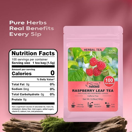 FullChea - Raspberry Leaf Tea Bag, 100 Count - Natural Pregnancy Tea for Women's Wellness, Menstrual Cycle & Uterine Health - Pure Red Raspberry Leaves - Non-GMO - Caffeine-free