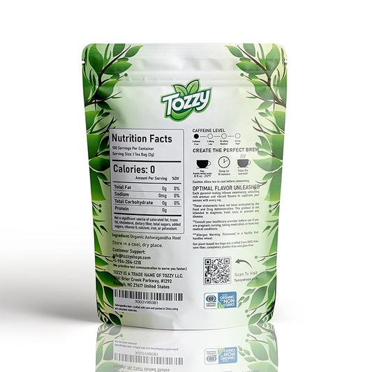Tozzy Organic Ashwagandha Tea - 100 Count | Pyramid Tea Bags (Plant-Based & Eco-conscious) | Pure Ingredients