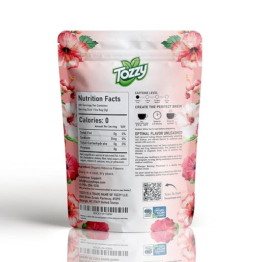 Tozzy Organic Hibiscus Tea - 100 Count | Pyramid Tea Bags (Plant-Based & Eco-conscious) | Pure Ingredients | Packaging May Vary