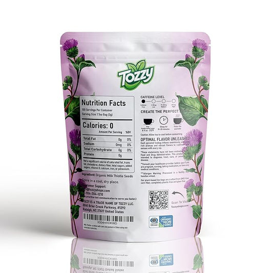 Tozzy Organic Milk Thistle Seeds Tea - 100 Count | Pyramid Tea Bags (Plant-Based & Eco-conscious) | Supports Liver Health | Pure Ingredients