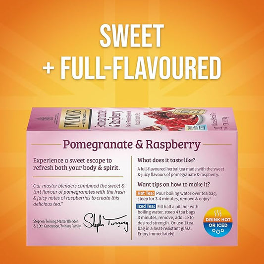 Twinings Pomegranate & Raspberry Herbal Tea Individually Wrapped Bags, 20 Count (Pack of 6), Naturally Caffeine-Free, Enjoy Hot or Iced, 120 Teabags