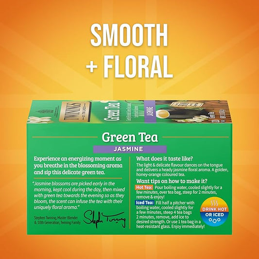 Twinings Green Tea with Jasmine Individually Wrapped Bags, 20 Count (Pack of 6), Fragrant Floral Scent, Caffeinated, Enjoy Hot or Iced, 120 Teabags