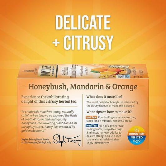 Twinings Honeybush, Mandarin, & Orange Herbal Tea Individually Wrapped Bags, 20 Count (Pack of 6), Naturally Caffeine-Free, Enjoy Hot or Iced, 120 Teabags
