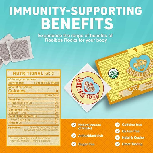 Caffeine Free South African Honeybush Tea 40 Decaf Tea Bags - Premium Tea Safe for Children, Pregnant Women and Nursing Moms – Naturally Sweet, Sustainably Sourced and Ethically Farmed in South Africa