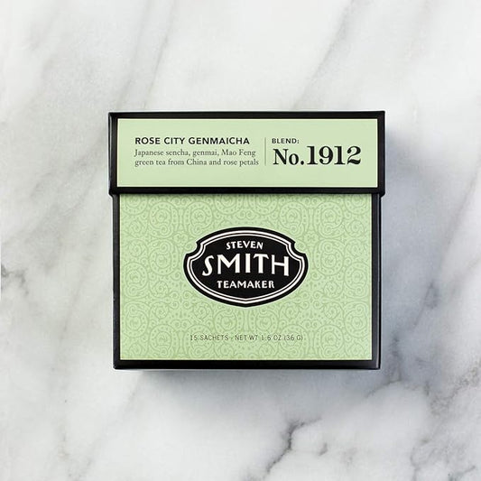 Smith Teamaker | Rose City Genmaicha No. 1912 - Sencha, Genmai, Mao Feng Green Tea & Rose Petals | Caffeinated Roasted Rice Full Leaf Green Tea Blend (15 Sachets, 1.26oz each)