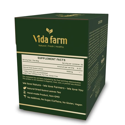 VIDA FARM 50 Premium Guava Leaf Tea Bags, Zero Sugar Tea, Handpicked, 100% Pure and Natural Guava Leaves, Non-GMO, No Caffeine, Gluten-Free, Vegan