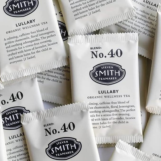 Steven Smith Teamaker Lullaby No. 40, Chamomile, Lemongrass, Lavender, Ashwagandha, Caffeine-Free, Organic Relaxing & Bedtime Wellness, Sugar-Free, Herbal Tea Bags, 100 Sachets, 0.95oz each