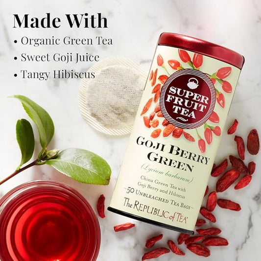 The Republic of Tea Organic Goji Berry Green Superfruit Tea, Tea Bag Tin, 50 Count