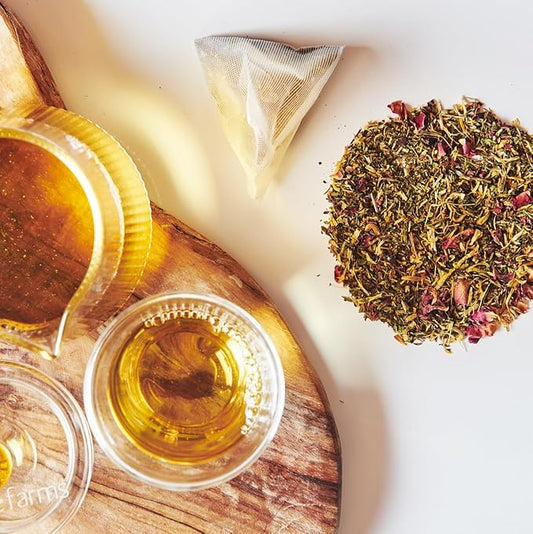 Grace Farms Organic SPEARMINT ROSE Herbal Tea (100 Enveloped Pyramid Sachets w/ String & Tag) | Naturally Sweet, Stress Relieving and Caffeine Free | Organic, Fair Trade and Kosher Certified | Delicious Iced Tea | Gives Back 100% of Profits