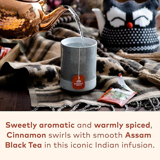 ORGANIC INDIA Tulsi Masala Chai Tea Bags - Holy Basil, Black Tea, Spices with Ginger, Stress Relieving, Immune Support, USDA Certified Organic, Antioxidant, Caffeinated - 18 Infusion Bags, 3 Pack