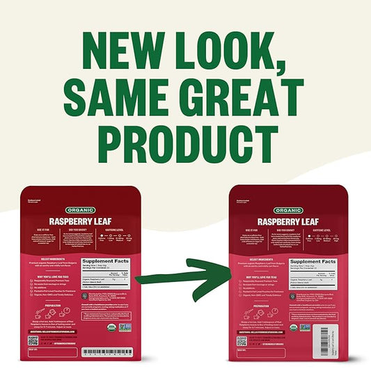 FGO Organic Red Raspberry Loose Leaf Herbal Tea, Cut and Sifted, Caffeine Free, Resealable Bag, 4oz (Pack of 1)