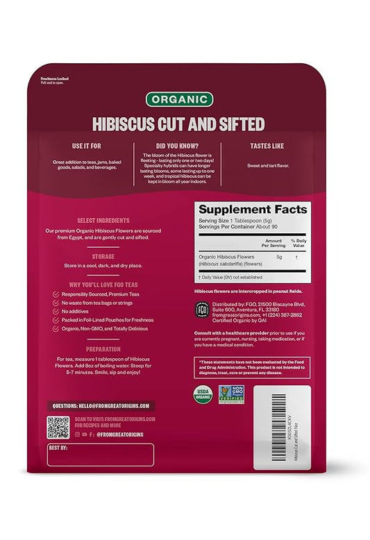 FGO Organic Hibiscus Flowers, Cut and Sifted, 16oz Bulk Resealable Bag, Packaging May Vary (Pack of 1)