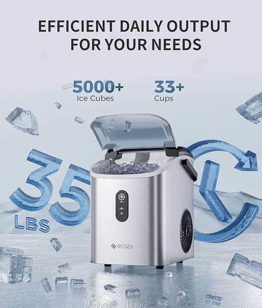 ecozy Nugget Ice Maker Countertop, Smart Portable Crushed Ice Maker with Voice Control, Pellet Chewable Ice 33lbs/24H, Self-Cleaning, with APP WiFi, Timer Function and Status Alerts, Bonus TDS Meter