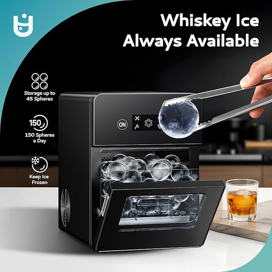 EUHOMY Ice Ball Maker Countertop, 144Pcs/day, 4Pcs Ready in 40Mins, Self-Cleaning, Sphere Ice Maker Machine with Crystal Clear Ice for Whiskey/Brandy/Rum
