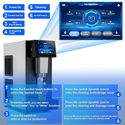 Commercial Ice Maker Machine 460LBS/24H 360LBS Ice Bin LCD Touch Screen Self Cleaning Function Freestanding Ice Maker 156 Counts Ice Ready in 5-10 min Clear Ice Cube for Cafe, Bar, Home