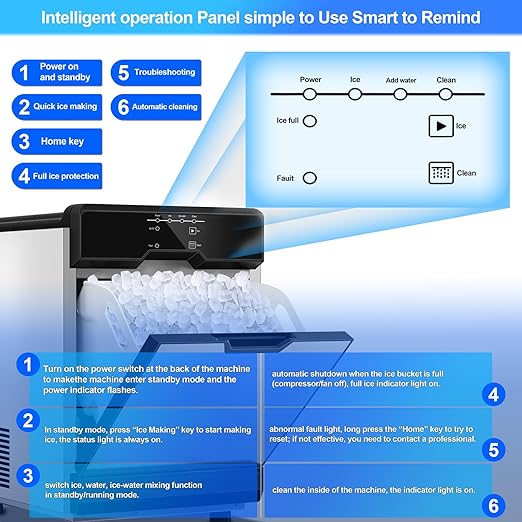 Commercial Ice Maker Machine, 100lbs/24H and 45pcs Stainless Steel Freestanding Ice Machine, Tap Water & Top Loading Under Counter ice Maker,Self-Cleaning for Bar Office Restaurant