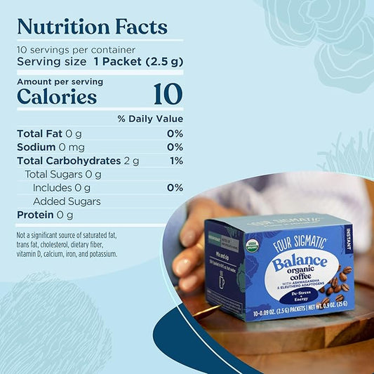 Adaptogen Organic Coffee by Four Sigmatic | Medium Roast Instant Coffee with Ashwagandha, Chaga, Eleuthero & Tulsi | Immune Support & Stress Relief | Keto | Multicolored | 0.09 Oz | Pack of 10