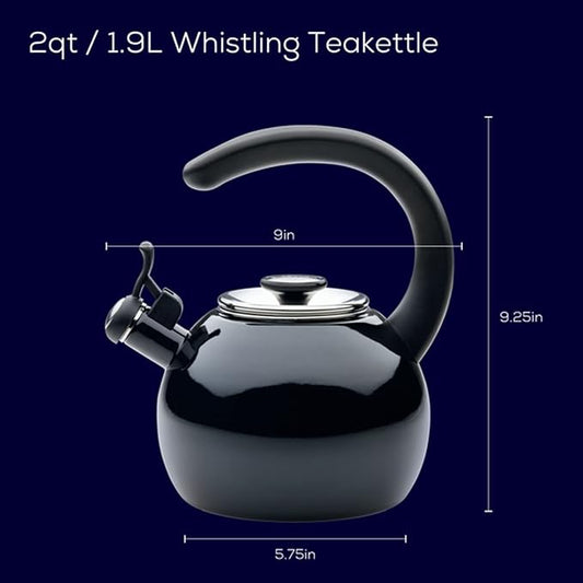 Circulon Enamel on Steel Whistling Teakettle/Teapot With Flip-Up Spout, 2 Quart - Black