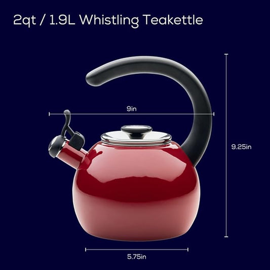 Circulon Enamel on Steel Whistling Teakettle/Teapot With Flip-Up Spout, 2 Quart - Red