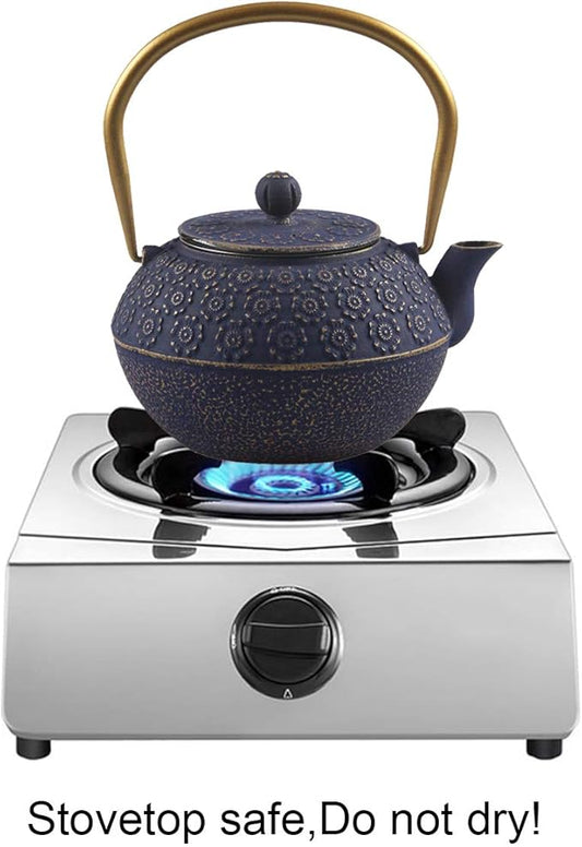 TOPTIER Japanese Cast Iron Tea Kettle with Infuser for Loose Leaf and Tea Bags, Stovetop Safe Teakettle with Enameled Interior, 40 oz (1200 ml), Navy Blue