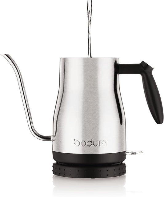 Bodum 34oz Bistro Gooseneck Electric Water Kettle, Pour Over Coffee & Tea, Brushed Stainless Steel