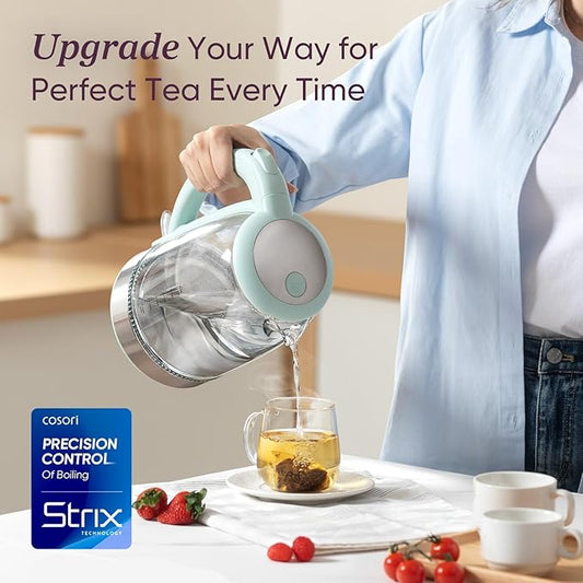 Cosori Electric Kettle, No Plastic Filter & Spout, Tea Kettle & Hot Water Boiler For Coffee & Tea, Water Heater & Teapot, Automatic Shut Off, Borosilicate glass, Green, 1.7L/1500W