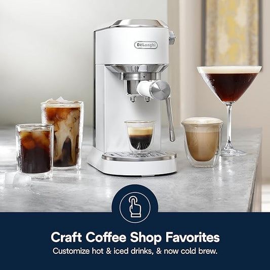 De'Longhi Dedica Duo Compact Espresso Machine - Cold Brew Coffee Maker with Milk Frother Wand- for Espresso, Hot & Iced Coffee, Cappuccinos, Lattes & Home Barista Brewing, Vanilla