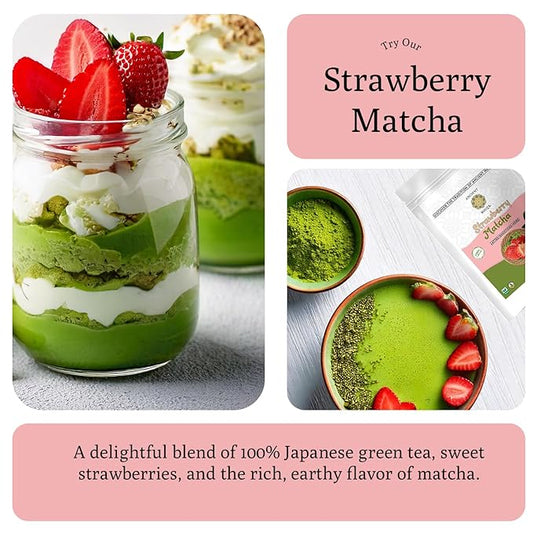 Ancient Roots Strawberry Matcha Powder 3.5 oz Japanese Green Tea with Real Strawberry Freeze Dried Fruit Powder No Added Sugar, Filled with Antioxidant Rich Superfood for Lattes, Smoothies & Baking - 25 Servings