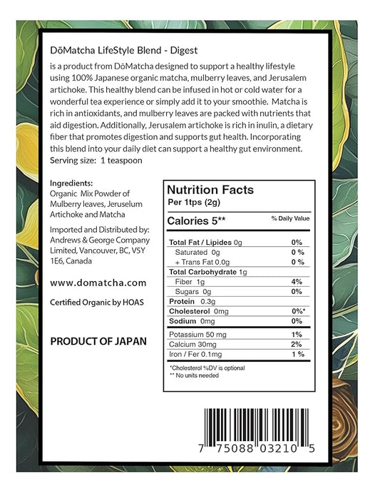 DoMatcha Digest Blend - Green Mix, 2.82 oz - Digest Health Blend with Mulberry, Jerusalem Artichoke & Organic Matcha for Vitality & Focus - Soothing Tea Experience - Product of Japan