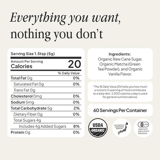 Morning Made Vanilla Flavored Ceremonial Grade Matcha Powder | 8.46oz (240g) Resealable Tin | 60 Servings Premium Japanese Green Tea | Sweetened with Organic Sugar | Rich in Antioxidants & Energy Boosting
