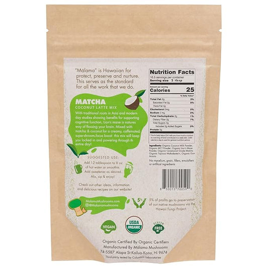 Malama Ceremonial Grade Matcha Coconut Latte Powder – Premium Japanese Matcha Green Tea Powder with Organic Lion’s Mane – Organic, Gluten-Free, Vegan & Unsweetened (3.5 oz) for Energy & Focus