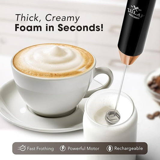 Zulay Kitchen Lux Rechargeable Milk Frother Handheld, 4 Included Whisks - Powerful 2-Speed Motor, Fully Waterproof, 2000mAh Battery - Drink Mixer For Latte, Cappuccino, Matcha, Protein Powder