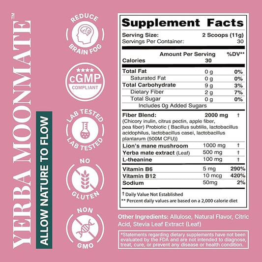 Yerba Mate Instant Tea Powder, 4-in-1 Functional Yerba Extract with Prebiotics & Probiotics, Low Sugar Clean Energy Drink for Focus, Gut Health & Reduce Brain Fog, Strawberry Matcha - 30 Servings