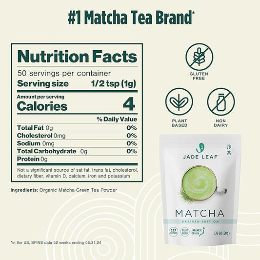 Jade Leaf Matcha Premium Ceremonial Grade Matcha Green Tea Powder - Japanese - Culinary, Ingredient, Ceremonial Barista Teahouse, Latte, Collagen, 1.76 Ounce (Pack of 1), Ceremonial Matcha