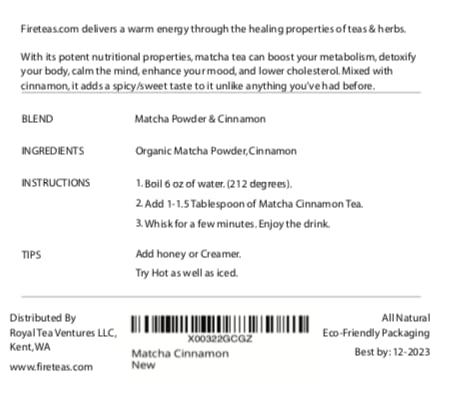 FIRE TEAS Matcha Cinnamon Powder - Organic Matcha Cinnamon Green Tea Powder