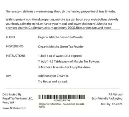 FIRE TEAS Sugar Free Matcha Tea with Stevia - Naturally Sweetened Green Tea Powder -)