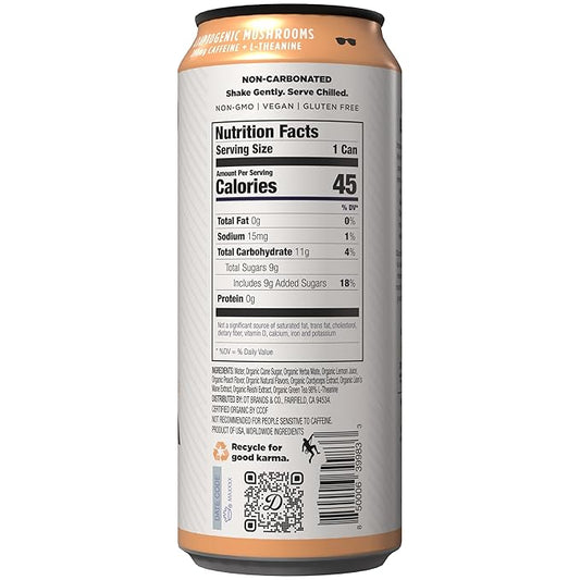 CLEAN Cause Low Calorie Peach USDA Organic Sparkling Yerba Mate Tea (16oz cans, 12-Pack Case) Low Sugar, 160mg Caffeine, Healthy Alternative to Soda & Energy Drinks.