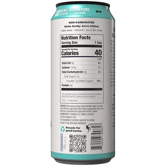 Daytrip Organic Yerba Mate Energy Drink- Clean, Plant Based Caffeine (200mg) with Adaptogenic Mushrooms and Green Tea for Focus and Brain Fog - Low Calorie, Low Sugar (12 Pack Case)
